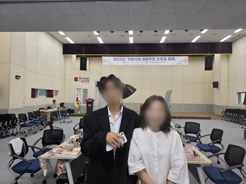 2025년 자활사업 참여주민 프로필 촬영 페이지 정보 작성자 최고관리자 작성일 조회61회 관련링크 이전글 다음글 목록 본문 일시: 2025. 9. 17.(수) 10:00~17:00장소: 부산사회복지종합센터 2층 대강당내용: 2025년 자활사업 참여주민 프로필 촬영 이전글 다음글 목록